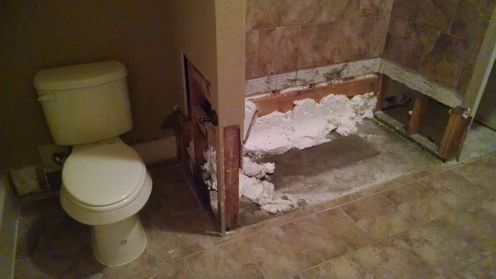 This was finally repaired in Jan 2015. We ended up being without use of our 2nd bathroom for over 7 weeks, 52 days actually.