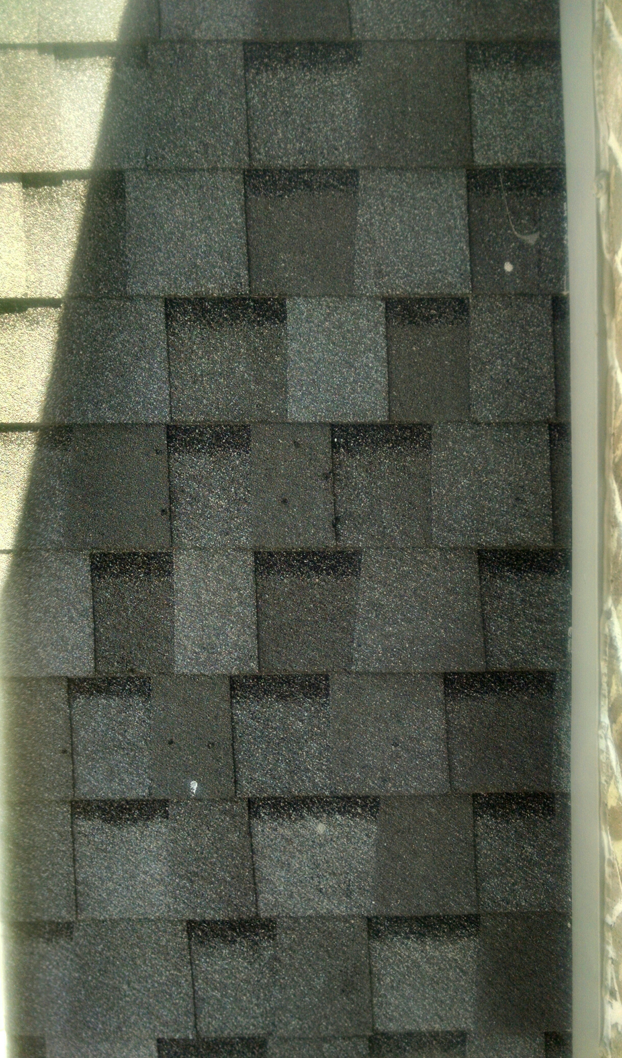 They used caulking to fill nail holes in the shingles instead of replacing. There are a lot of shingles that are like this. This speaks volumes about how they respond to problems such as your roof leaking. Stop and ask other Maverick Homes buyers in Claire Vista about their roof leaks as most of their homes in this development have had or still have water leaks from around the chimney.